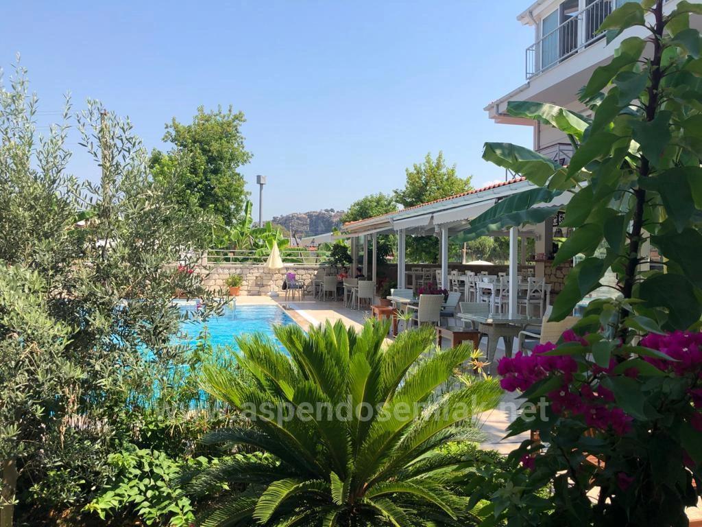 Boutique-Hotel in Dalyan Gülpınar, nur wenige Gehminuten vom Kanal entfernt, auf einem 1400 m2 großen Grundstück mit drei Seiten der Straße, steht zum Verkauf. Das in einem modernen Gebäude erbaute Boutique-Hotel verfügt über 17 Zimmer. Es verfügt über ein 150 m2 großes offenes und 150 m2 großes Innenrestaurant. Es verfügt über Fußbodenheizung und Zentralheizung. Der Pool ist ein Salzsystem und am Pool gibt es eine Terrasse zum Sonnenbaden. Der Garten wurde in die Architektur des Hotels integriert, dessen Landschaftsgestaltung durch üppige grüne Bäume und Blumen ergänzt wurde. Es ist Tourismus-zertifiziert. In der Küche gibt es einen Kühlraum. Für die Anlage gibt es einen speziellen Generator. Preis: 2.500.000€