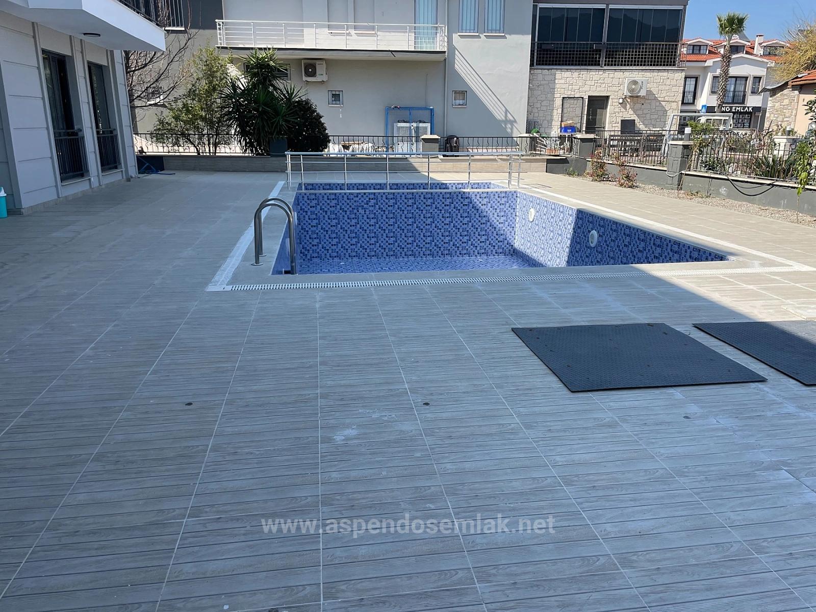 In einem Gebäude mit insgesamt 8 Wohneinheiten auf einem 1000 m² großen Grundstück im Zentrum von Dalyan steht eine Erdgeschosswohnung zum Verkauf. Die Wohnung verfügt über 2 Schlafzimmer, 1 Wohnzimmer mit offener Küche und 1 Badezimmer mit einer Wohnfläche von insgesamt 75 m². Sie ist komplett möbliert. Das Gebäude ist neu und renovierungsbedürftig. Zur Anlage gehört ein Gemeinschaftspool. Einkaufsmöglichkeiten und Supermärkte sind fußläufig erreichbar. Die Wohnung liegt 10 km vom Strand Iztuzu und 25 km vom Flughafen entfernt. Der Preis beträgt 210.000 Euro.
