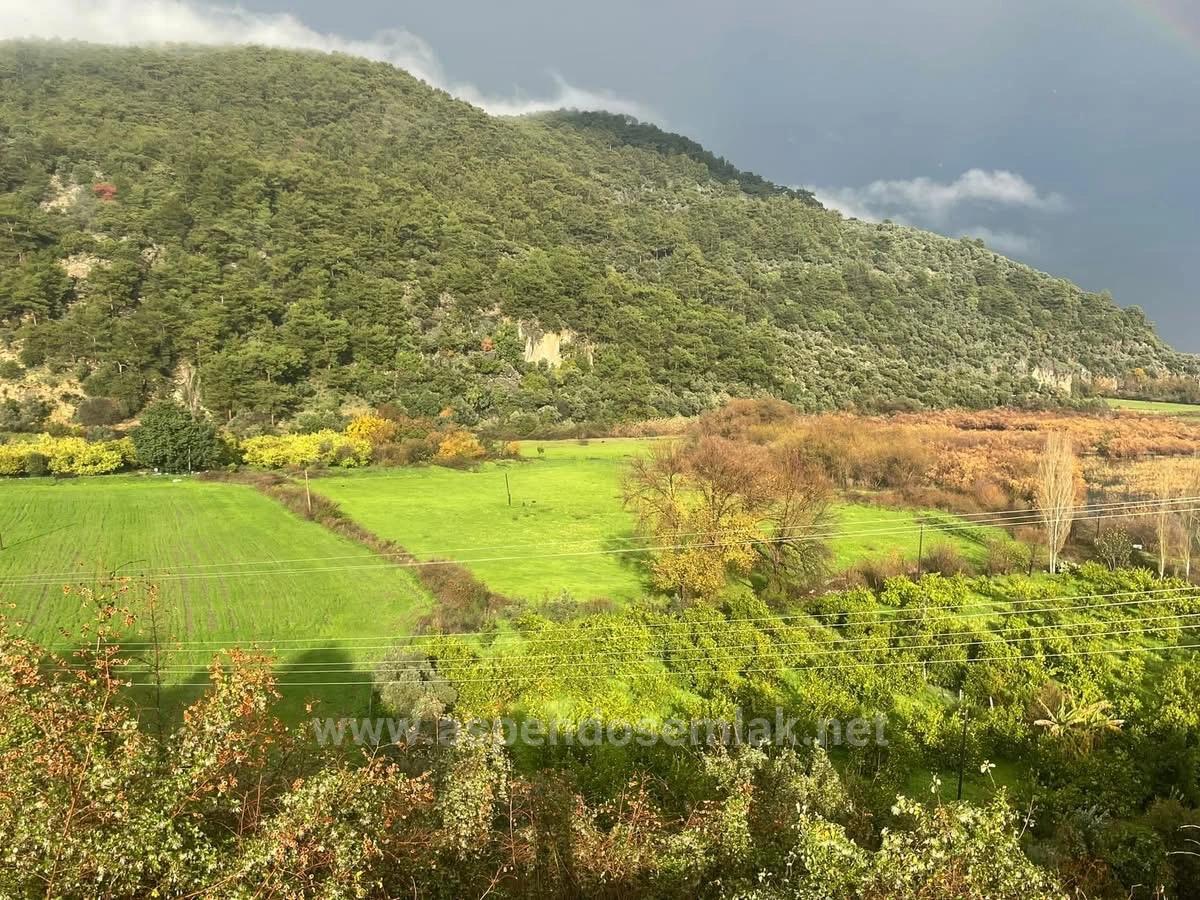 A 35,000 m2 plot of land with six buildings on it is for sale in the Çandır neighborhood of Köyceğiz. It is also suitable for use as a farm. The land, consisting of 3 title deeds, has no problems with roads, water, electricity, or telephone. One side of the property is bordered by a forest. It is connected to a one-way private paved road that ends on the land. The buildings on the land are suitable for tourism and organic farming investment. There is a deep well drilled on the land. There are lemon and orange trees in some parts. Eco-tourism is possible. The buildings on the property, which is 500 m2 from the Kaunos ruins, have no permit issues. The buildings are in a usable condition. It is located in a second-degree protected area. There are no additional settlements around it. It has a very quiet and natural living environment. It has nature and forest views. The land is 2 km from Dalyan, 30 km from the airport, 6 km from the beach, and 34 km from Köyceğiz. The price of the land is: 1,500,000 EURO