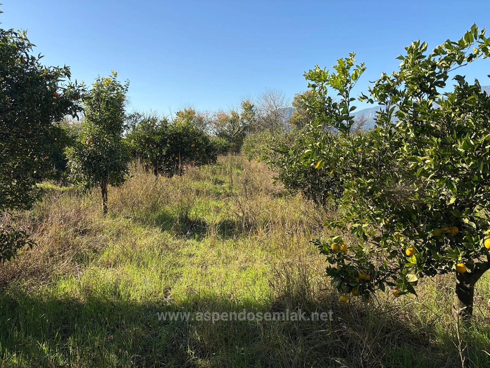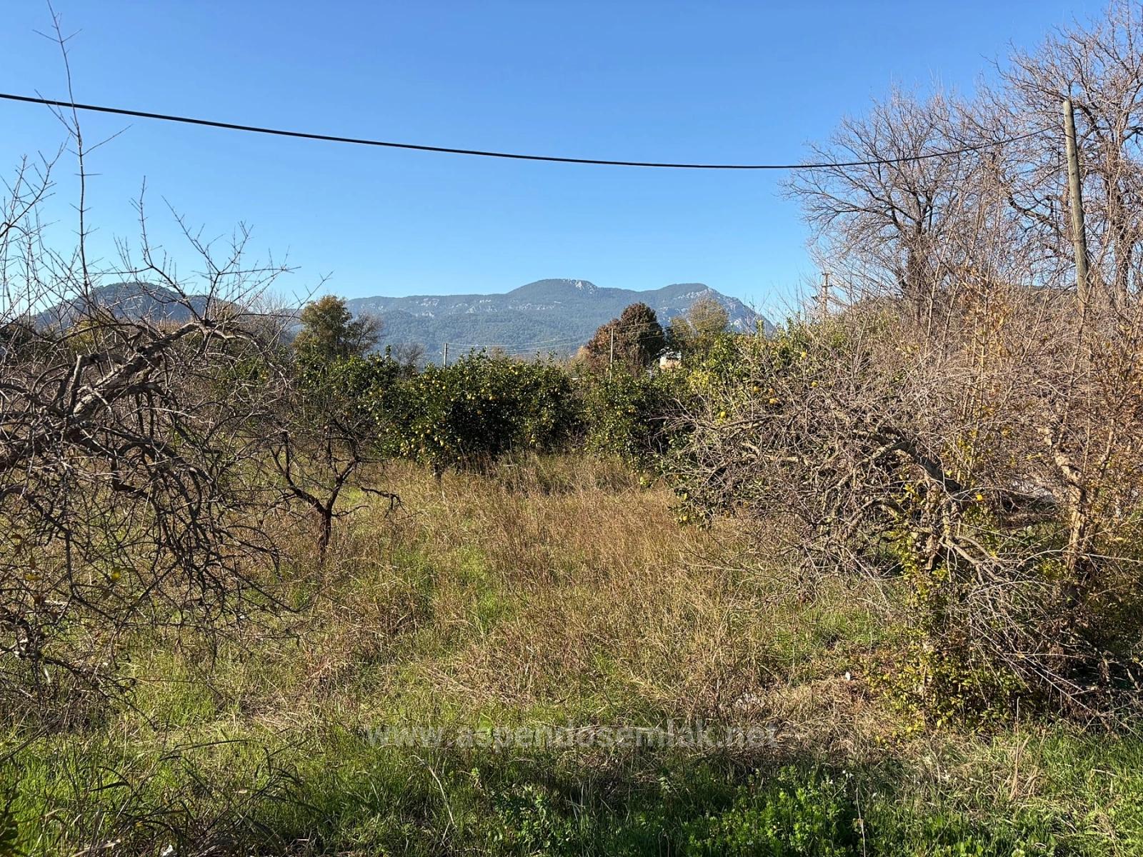 A corner plot of 4,541 m2 garden is for sale in Dalyan, close to the center. It contains various fruit trees. There are no problems with road access, water, electricity, or telephone. It is close to the boundaries of the zoning plan. It is suitable for future investment. The land is 1.5 km from the center, 11 km from Iztuzu Beach, and 25 km from the airport. The price is 25,000,000 TL