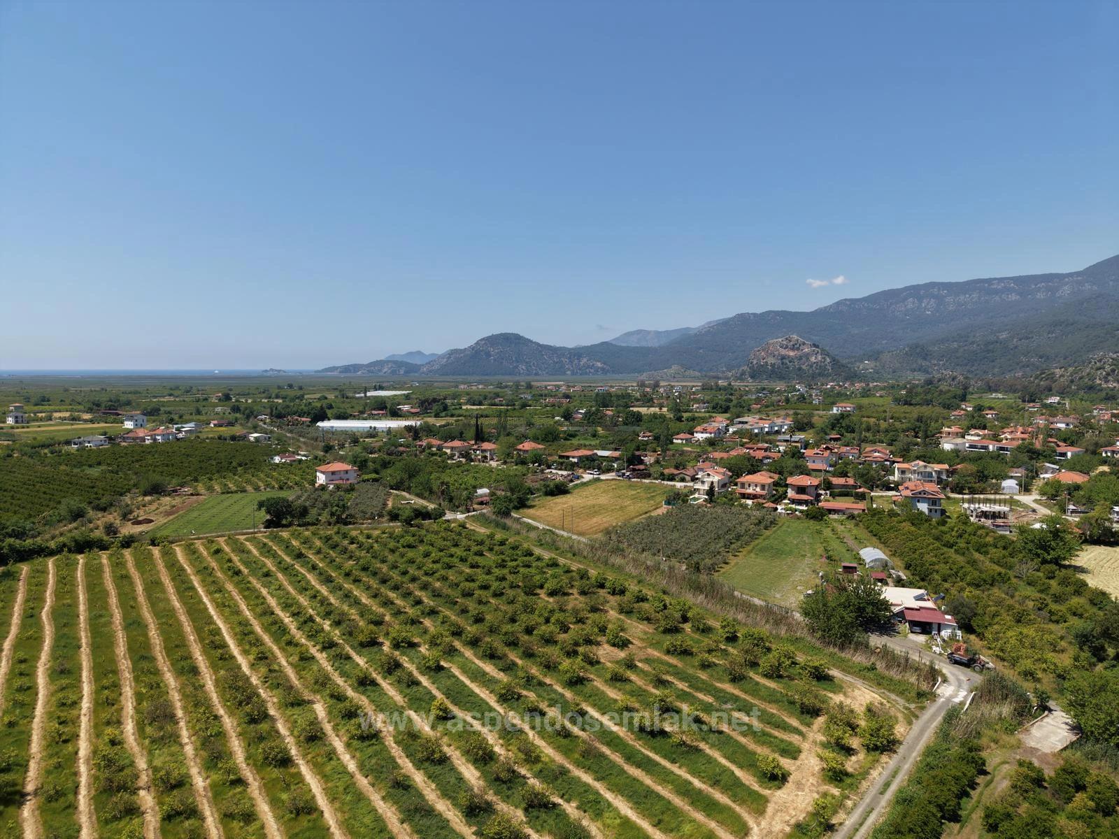 A 5100m2 plot of land, classified as agricultural land, is for sale near the center of Dalyan. It contains various fruit trees. There are no problems with road access, water, electricity, or telephone. It is close to the zoning plan boundary. There are buildings in the surrounding area. It is a suitable area for investment. It has nature and forest views. The land is 10 km from Iztuzu Beach, 1.5 km from the center, and 25 km from the airport. The price of the land is: 14,000,000 TL