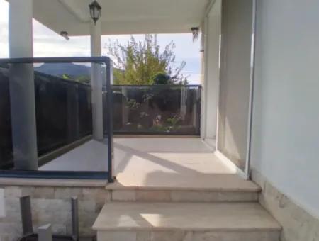 The house is greeted by a house with a cute blue and white combination of lemon and orange trees in the garden, the magnificent scents of flowers planted in front of the garden fence.  When you enter the house, there is a wall-mounted custom-made sliding portmanto and to the right of the shoe, bedrooms with en-suite bathrooms passing through the living room and living room. Both bedrooms are equally large, very bright and convenient. Walk-in closets in bedrooms, bathroom cabinets and shelves in their bathrooms are all custom-made glossy MDF.  From the bedroom windows you can see the orange groves located at the back of the house. All of the interior doors of the house are quality American press doors, windows are PVC joinery with heat glazing.