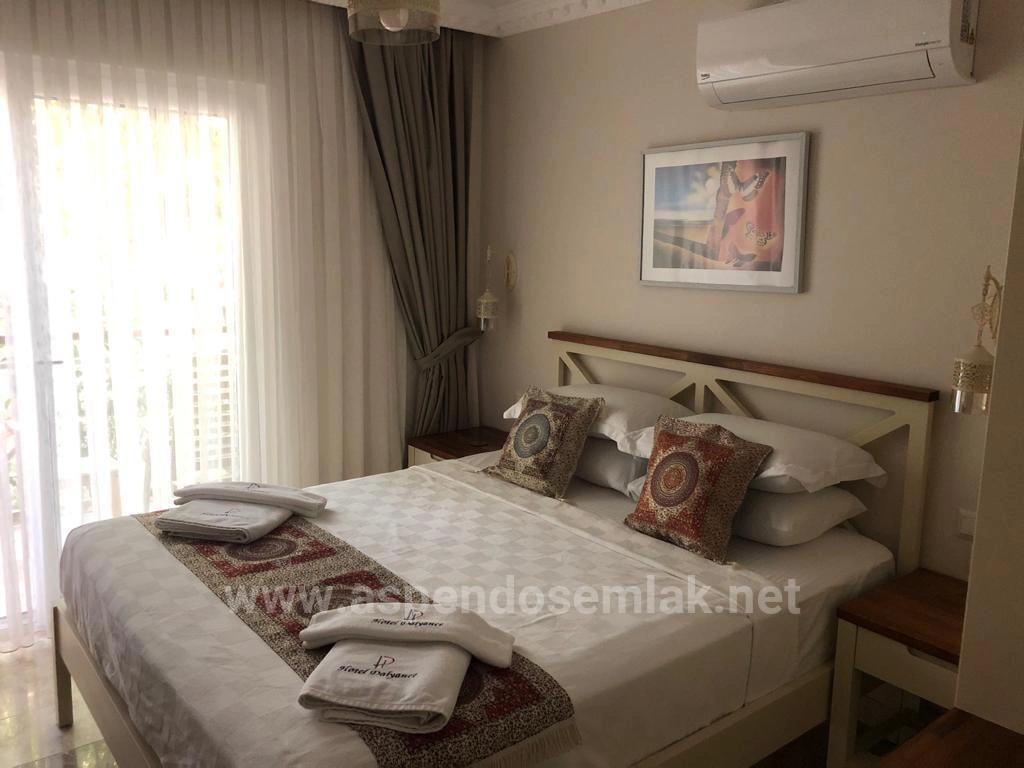 Продается бутик-отель в Дальян Гюльпынар, в нескольких минутах ходьбы от канала, на участке площадью 1400 м2 с тремя сторонами дороги. Бутик-отель построен в современном здании и располагает 17 номерами. В отеле есть открытый ресторан площадью 150 м2 и крытый ресторан площадью 150 м2. Имеется пол с подогревом и центральное отопление. Бассейн представляет собой соляную систему, а у бассейна есть терраса для принятия солнечных ванн. Сад гармонично вписан в архитектуру отеля, ландшафтный дизайн которого дополнен пышными зелеными деревьями и цветами. Имеет туристический сертификат. На кухне имеется холодильная камера. Для объекта имеется специальный генератор. Цена: 2.500.000€