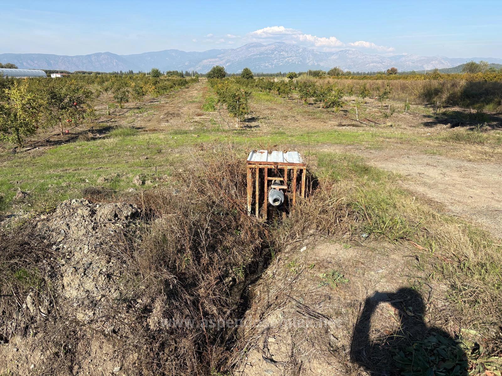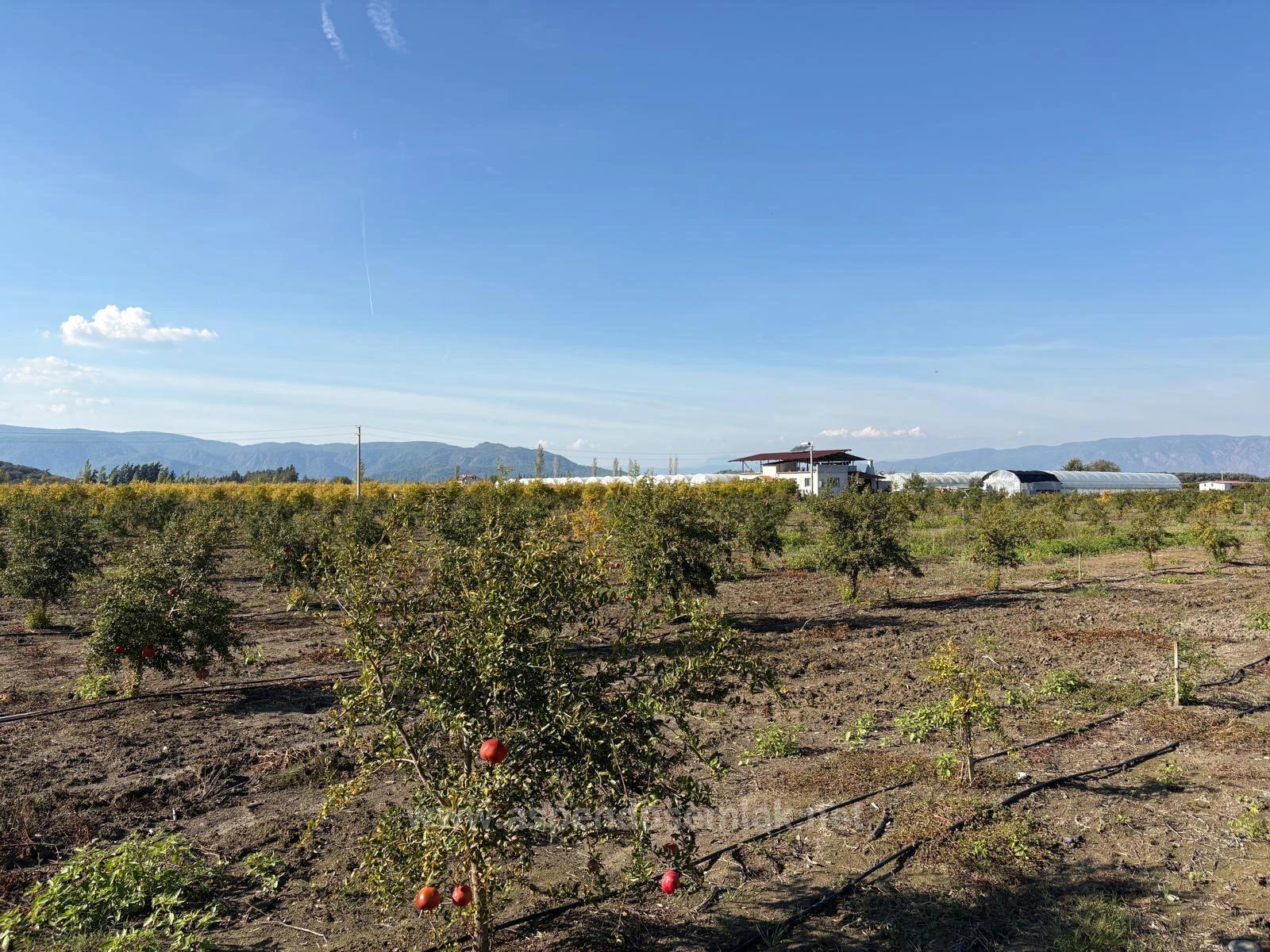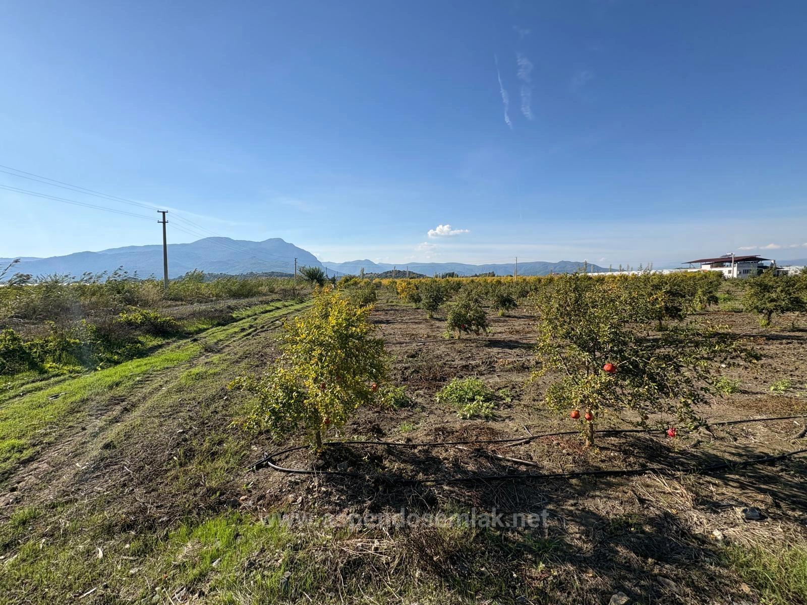 В Эскикёе продаётся участок общей площадью 21 500 м2, состоящий из двух смежных участков площадью 11 262 + 10 238 м2. На участке растут двухлетние гранатовые деревья. Нет проблем с дорогой, водой, электричеством и телефонной связью. На участке есть электричество и глубокая артезианская скважина. Система орошения капельная. К участку проложена кадастровая дорога. Вокруг расположены населённые пункты. Стоимость участка, расположенного в 3 км от Даляна, в 10 км от Ортаджи, в 13 км от пляжа Изтузу и в 25 км от аэропорта: 37 500 000 турецких лир