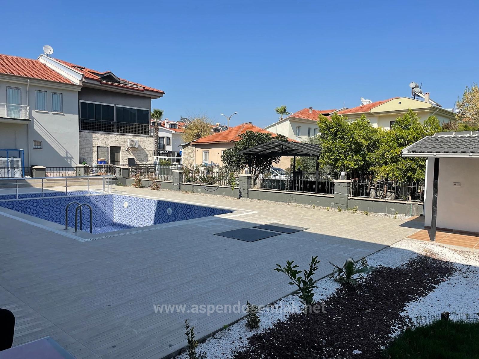 Dalyan merkezde 1000m2 arsa içerisinde 8 daireli olan apart içerisinde zemin kat dairesi satılıktır. 2 yatak odalı, 1 salon açık mutfak, 1 banyolu toplamda 75 m2 kullanım alanı vardır. Full eşyalıdır. Yeni bina ve masrafı yoktur. Ortak kullanımlı açık yüzme havuzludur. Alışveriş marketlerine yürüme mesafesindedir. İztuzu Plajı'na 10 km, havaalanına 25 km mesafesi olan dairenin fiyatı: 210.000 EURO
