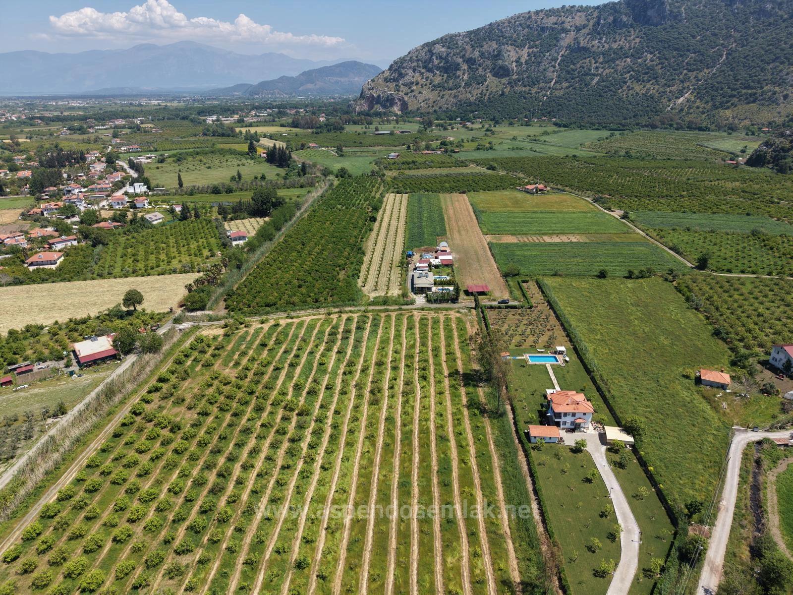 Dalyan merkeze yakında 5100m2 tarla niteliğindeki bahçe satılıktır. İçerisinde çeşitli meyve ağaçları vardır. Yol, su, elektrik, telefon sorunu yoktur. İmar planı sınırına yakındır. Etrafında yapılaşmalar vardır. Yatırıma uygun bir bölgedir. Doğa ve orman manzaralıdır. İztuzu Plajı'na 10 km, merkeze 1.5 km, havaalanına 25 km mesafesi olan tarlanın fiyatı: 14.000.000 TL